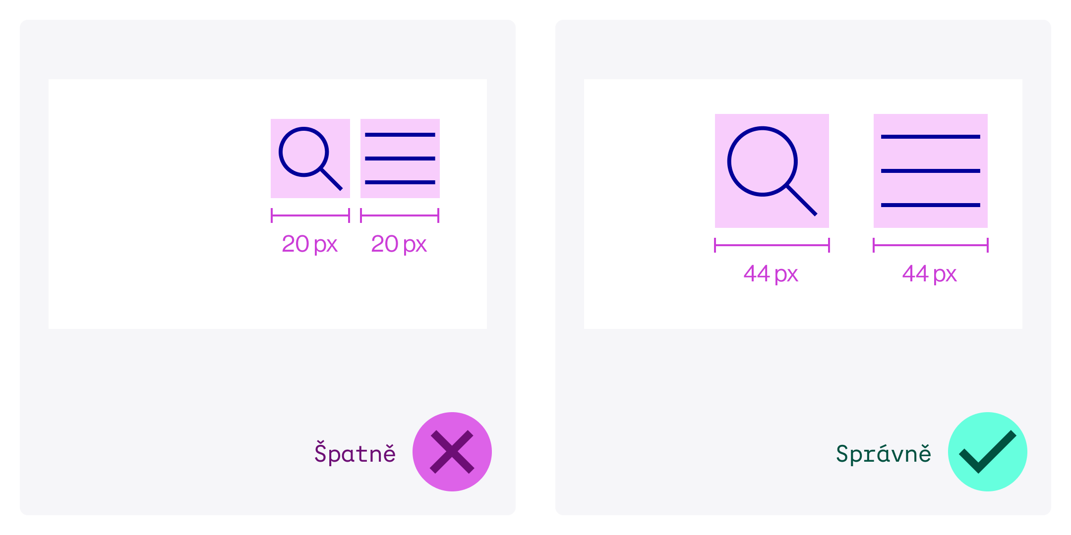 Udržujte dostatečně velkou plochu cílů dotyku. Dotykové prvky by měly mít minimálně 44 × 44 px, aby je bylo snadné trefit.