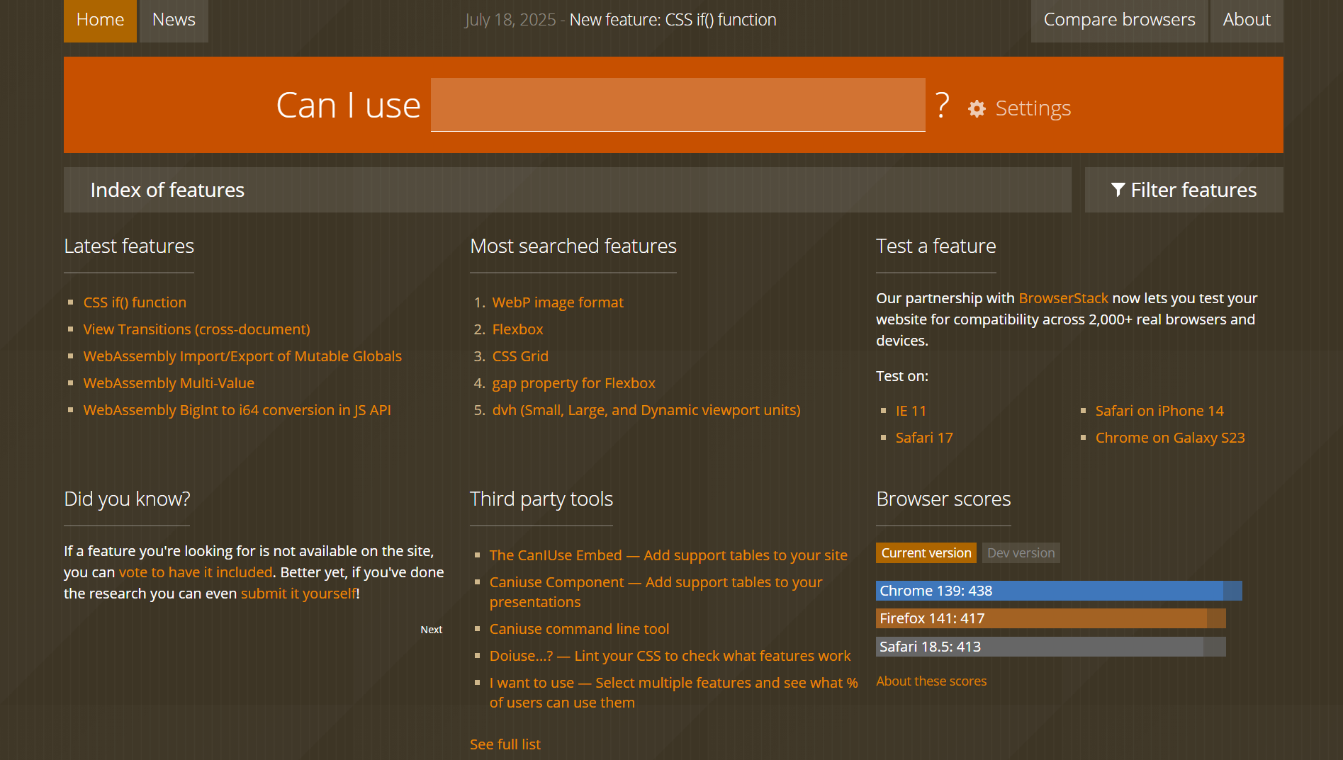 Rozhraní je záměrně jednoduché. Napíšete funkci a dostanete jasná fakta. Můžete jít do hloubky a podívat se na detaily implementace nebo na související specifikace. Díky této přehlednosti se vyhnete „pasti kompatibility“ – tedy situaci, kdy část uživatelů funkci vůbec nevidí.