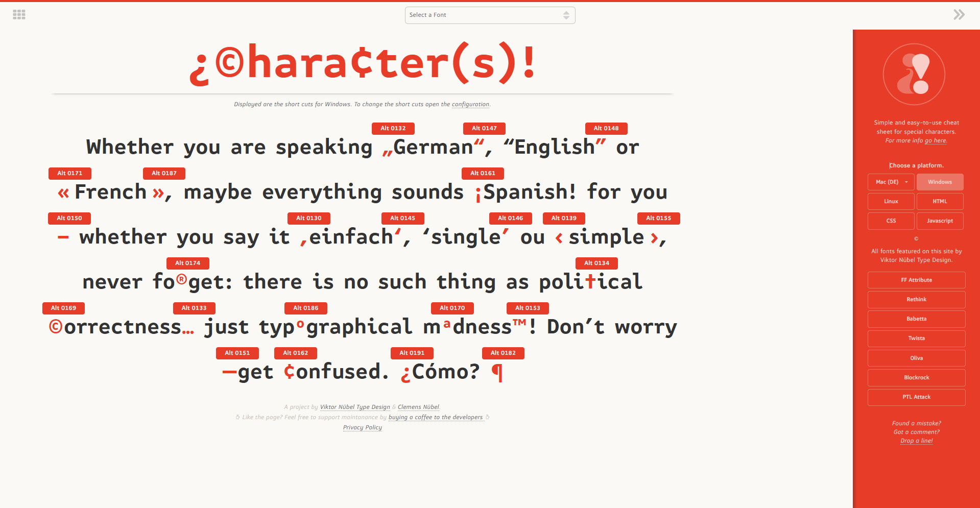 Nápad vznikl z praxe. Designér Viktor Nübel měl dlouhá léta na stole podložku od MetaDesignu, která ukazovala klávesové zkratky pro správné znaky. Když začal pracovat ve vícero agenturách a podložku neměl po ruce, začala mu chybět. A tak vytvořil web. Z původně jednoduché HTML stránky se postupně stal promyšlený a plně interaktivní nástroj.