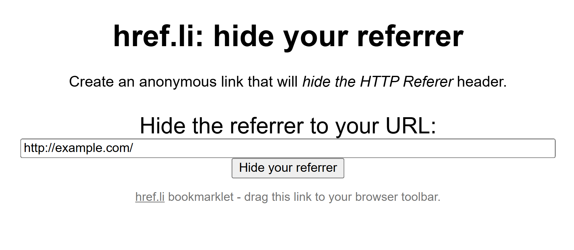 Služba href.li vznikla proto, aby z odkazů odstraňovala informaci o refereru. Kliknutí na odkaz přes href.li zajistí, že cílový web nevidí, odkud návštěvník přichází. Pro online fóra, komunity či sociální sítě to je rychlá a pohodlná cesta, jak sdílet odkazy, aniž by se prozrazoval původ návštěvníka.