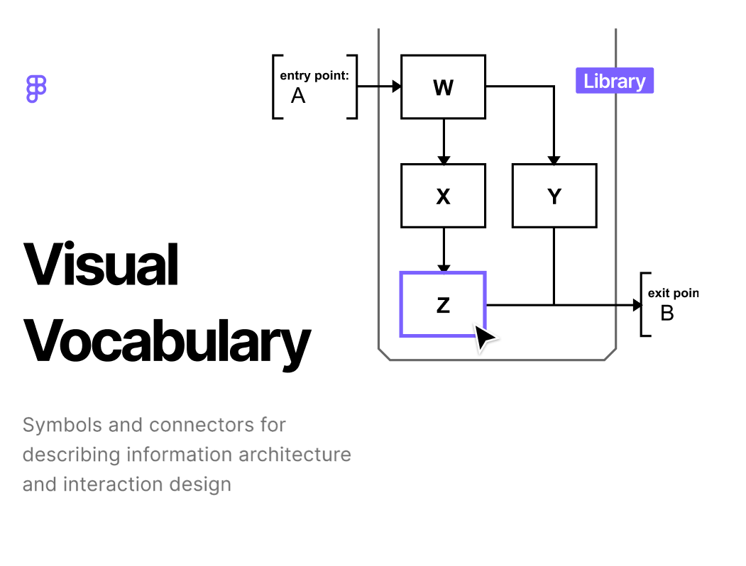 Visual vocabulary – vizuální slovník Jesseho Jamese Garretta je lehký a přehledný způsob, jak si navrhovat uživatelské toky. Jeho síla spočívá v jednoduchosti – designéři a produktové týmy s jeho pomocí snadno nakreslí přehledné schéma obrazovek, rozhodnutí a logických větvení, aniž by potřebovali speciální nástroje nebo školení.