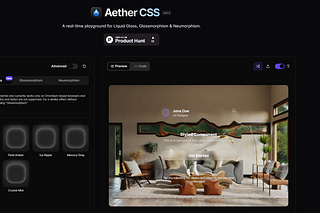 Aether CSS je online nástroj pro tvorbu efektů skla a reliéfu s živým náhledem a okamžitým CSS.